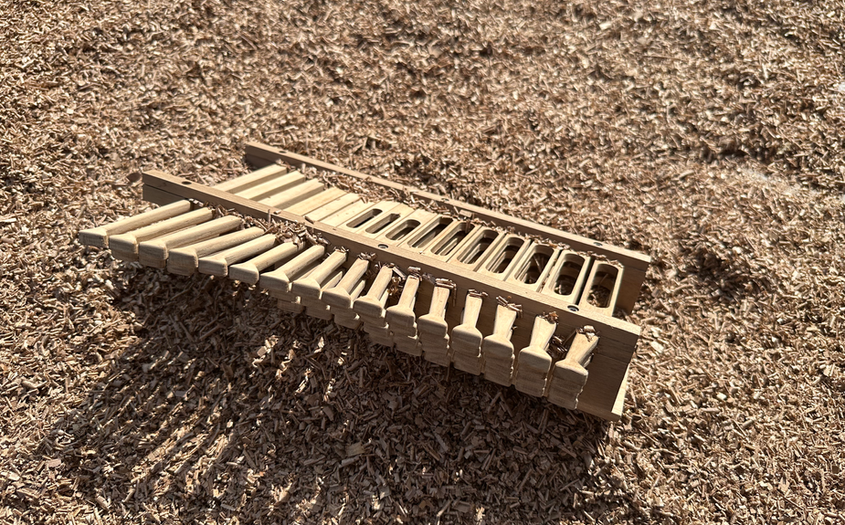 Together, bridge and tailpiece are essential components that shape the alto nyckelharpa's voice and character.